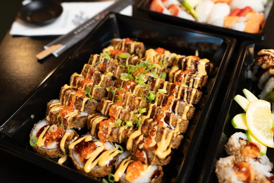 Bestill en storslagen sushifest, gå for en fristende festmeny med både sushi, kyllingspyd og gyoza, eller en familiefest med litt av alt.