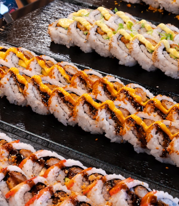 Her har vi noe for alle og enhver. Sushi, dumplings, vårruller, kyllingsticks, fishsticks og asiatisk salat – favorittene venter på rekke og rad. Fyll på med det som frister mest fra Norges mest kjente buffet!